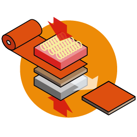 In-line extrusion: film bonds directly on the extruded substrate at the exit of the die, no glue is needed. Laminated sheets can be vacuum/thermo formed, depending on processed materials.